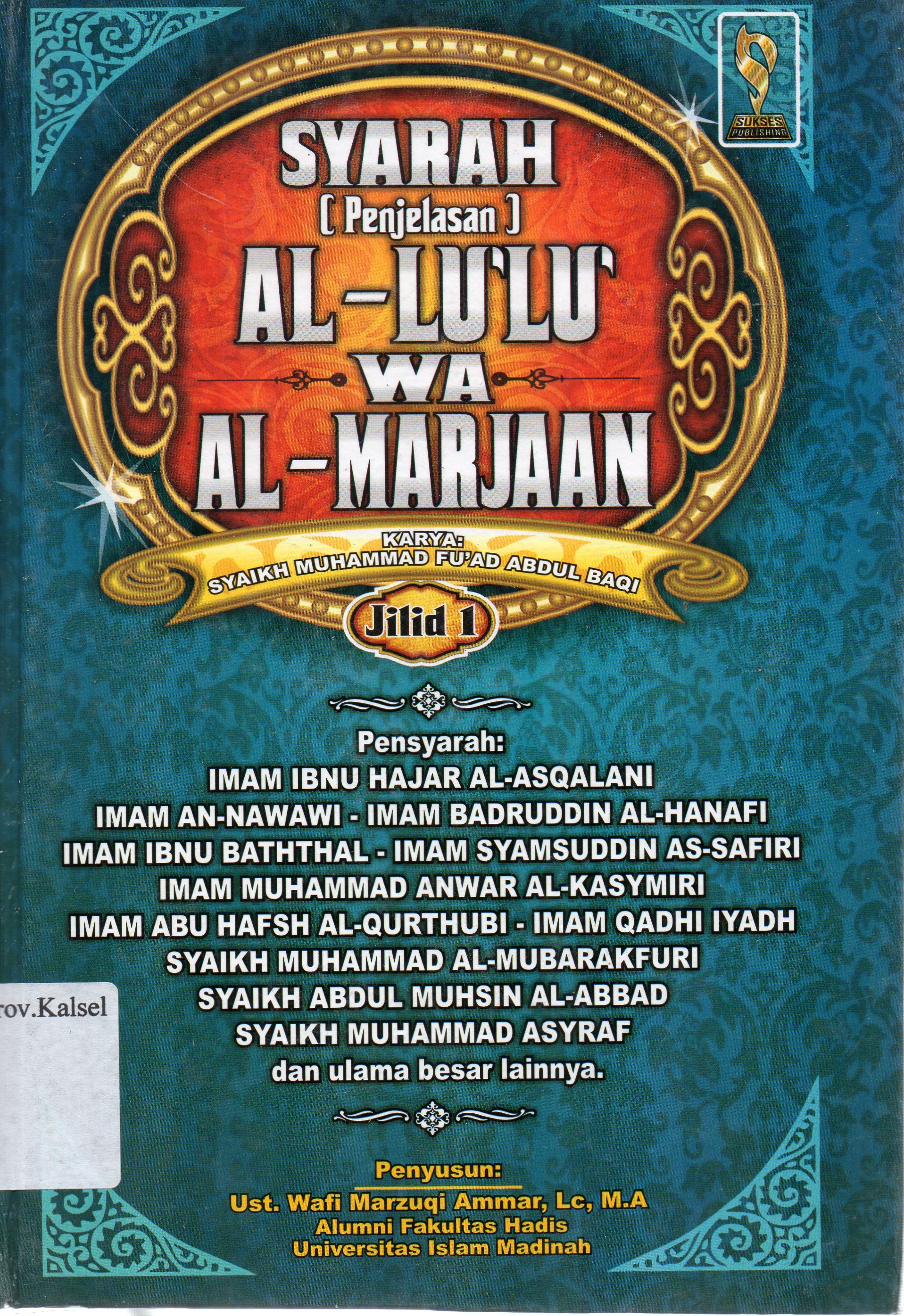 | Judul | Syarah (penjelasan) Al-Lu-Lu wa Al-Marjaan / Ust.Wafi Marzuqi Ammar ;editor, H.Ainul Haris Umar Thayib. |