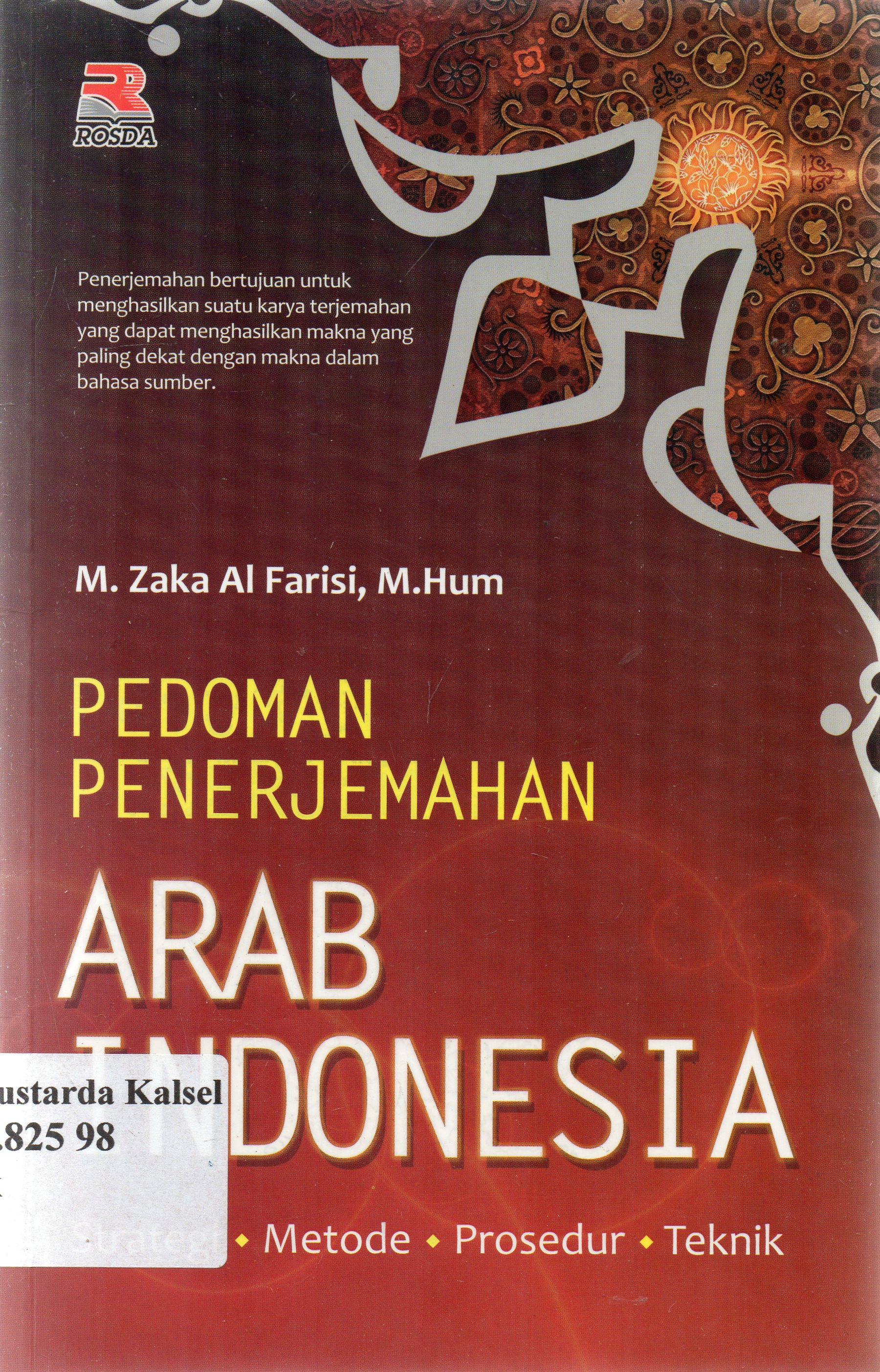 | Judul | Pedoman penerjemahan bahasa Aran Indonesia : strategi, metode, prosedur, twhnik / Zaka Al Farisi Adriayani Kamsyach |