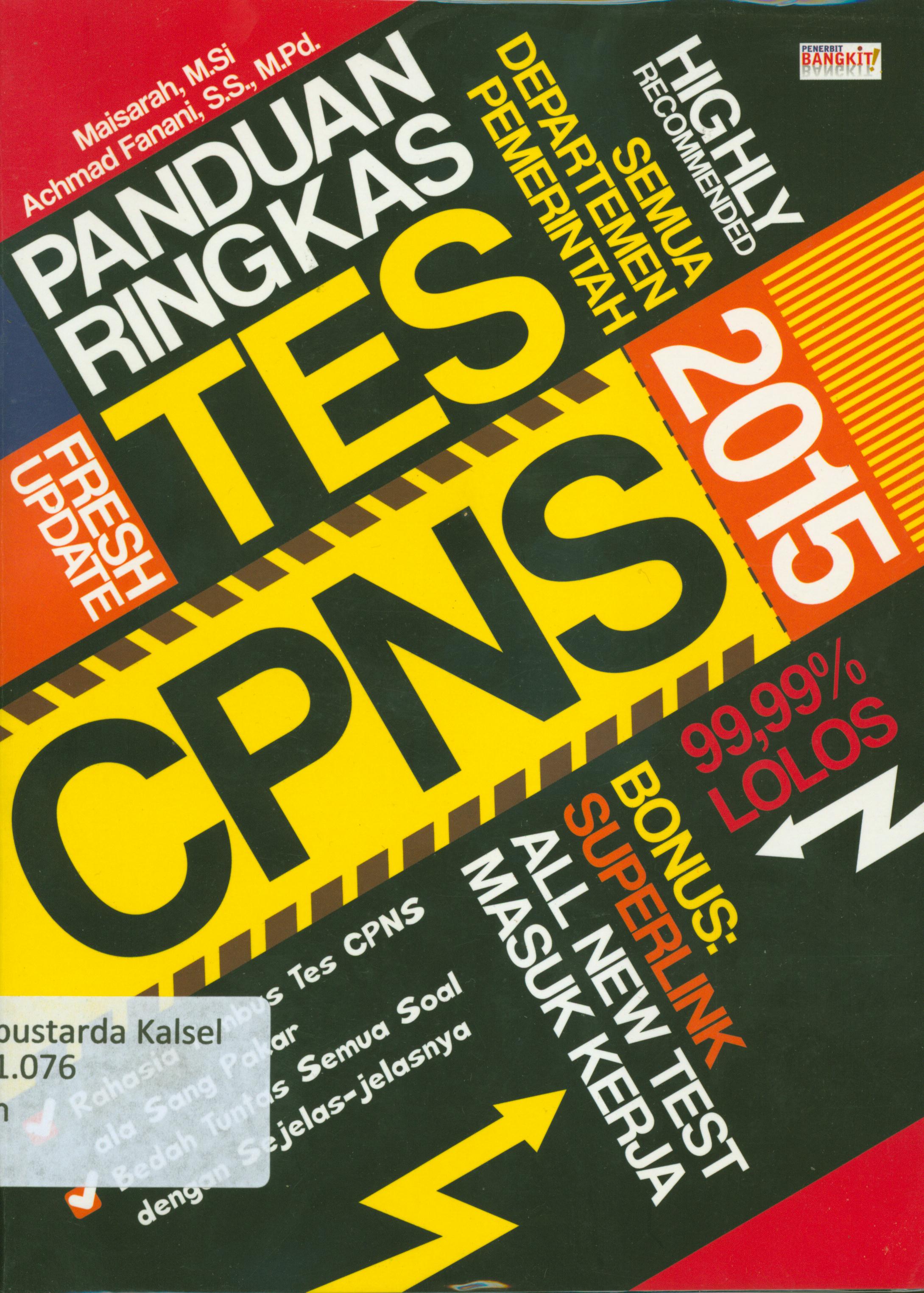 | Judul | Panduan ringkas tes CPNS 2015 / Achmad Fanani, Maisarah ; penyunting, Ayunisa Erdiani S |