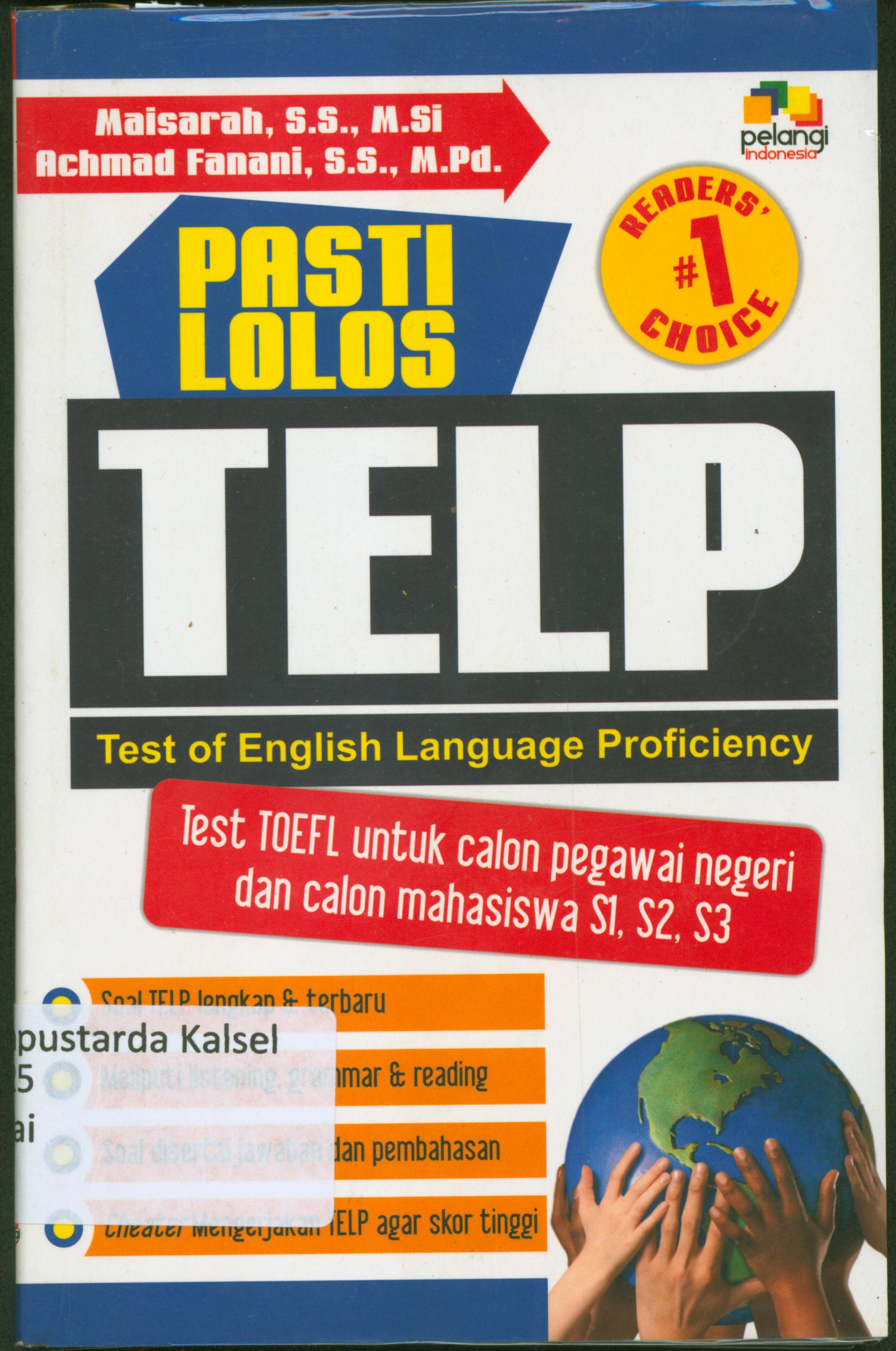 | Judul | Pasti lolos TELP : Test of English languange propincilacy / Maisarah, Achmad Fanani |