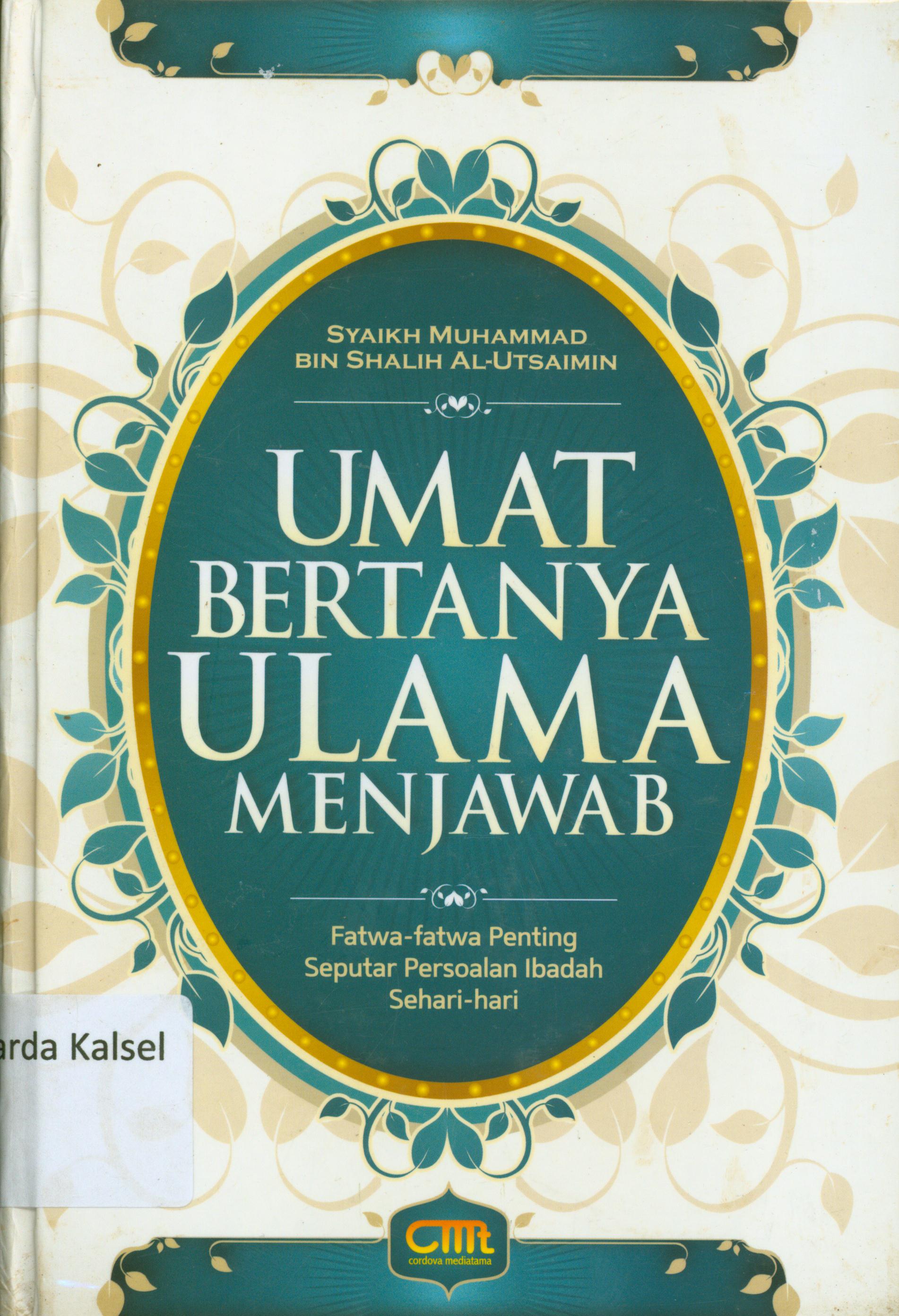 | Judul | Umat bertanya ulama menjawab : Fatun-Fatwa penting seputar persoalan ibadah sehari-hari / Fahd bin Nashir-As-Sulaiman ; penerjemah, Qosdi Ridwannullah ; editor, Abu Ammar. |