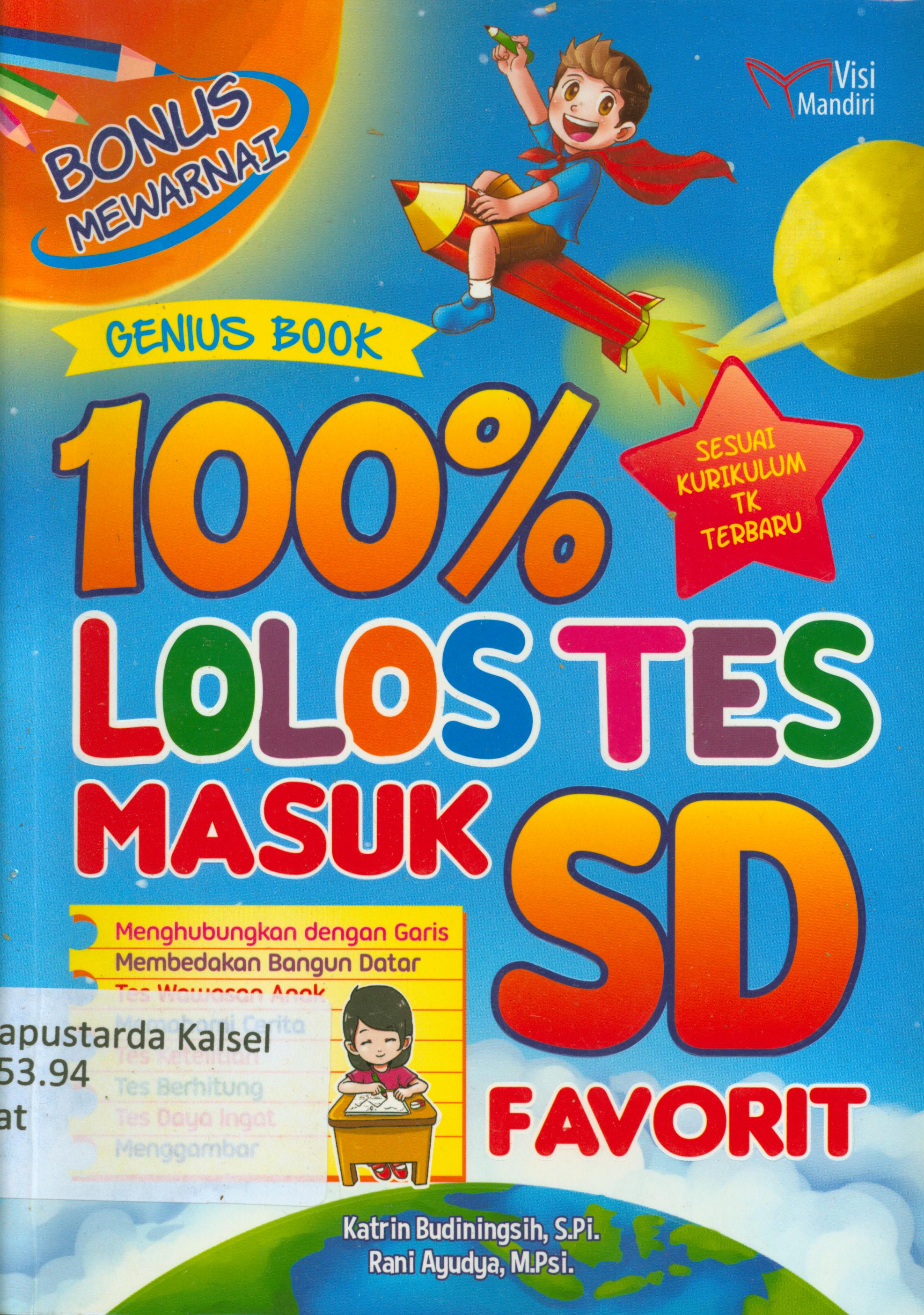 | Judul | 100 % lolos tes masuk SD favorit / Katrin Budiningsih, Rani Ayudya, M.Psi ; penyunting, M. Lukman Hakiem, Tin Zulaeha. |
