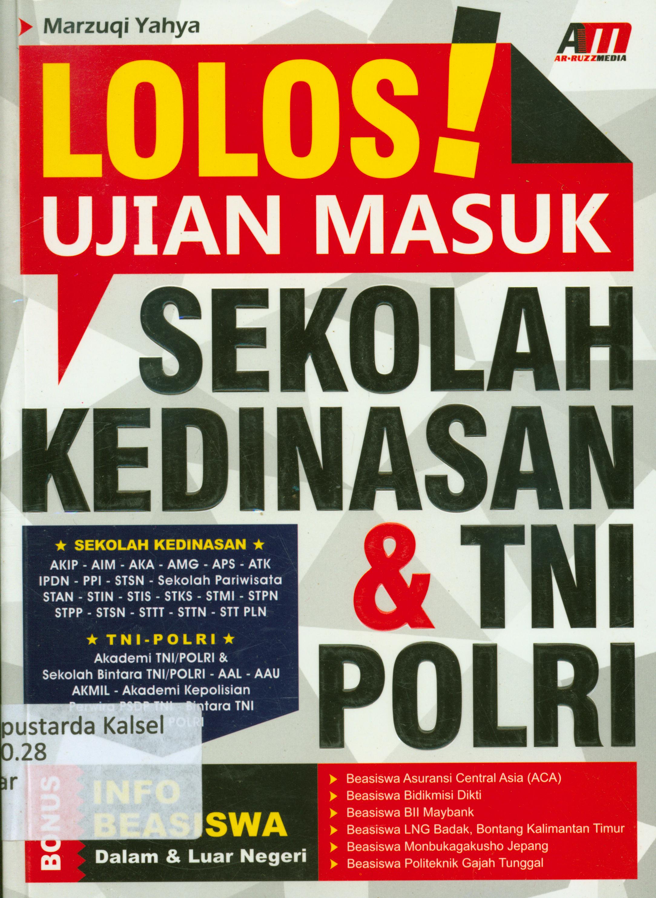 | Judul | Lolos ! ujian masuk sekolah kedinasan dan TNI POLRI / Marzuqi Yahya ; editor, Fatonah Winiarum |