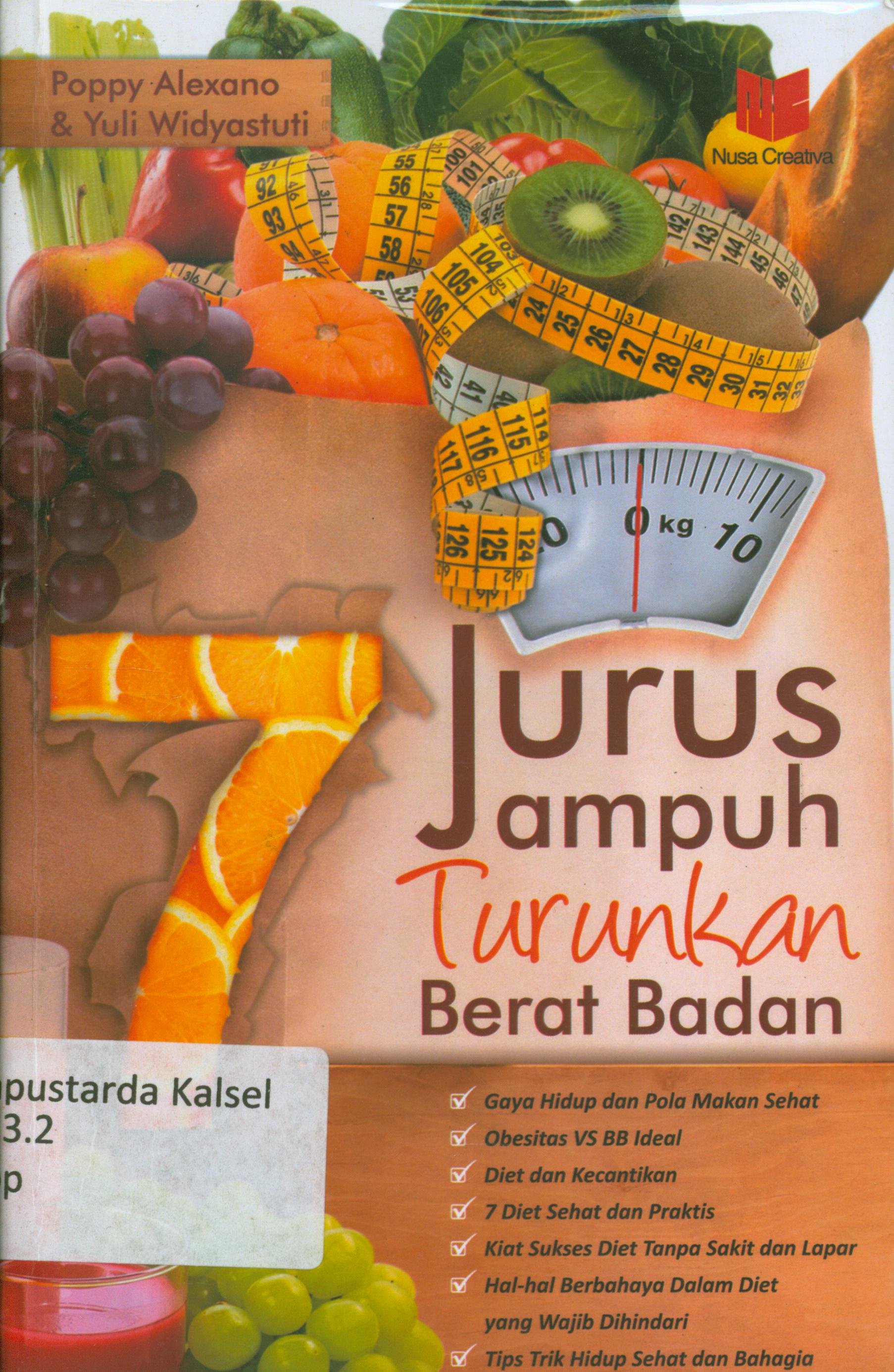 | Judul | 7 jurus ampuh turunkan berat badan : Gaya hidup dan pola makan sehat, obesitas VS BB ideal, diet dan kecantikan, 7 diet sehat dan praktis,kiat sukses diet tanpa sakit dan lapar, hal-hal berbahaya dalam diet yang wajib dihindari, tips trik hidup sehat dan bahagia / Poppy Alexano, Yuli Widyastuti ; penyunting, Chrisna. |