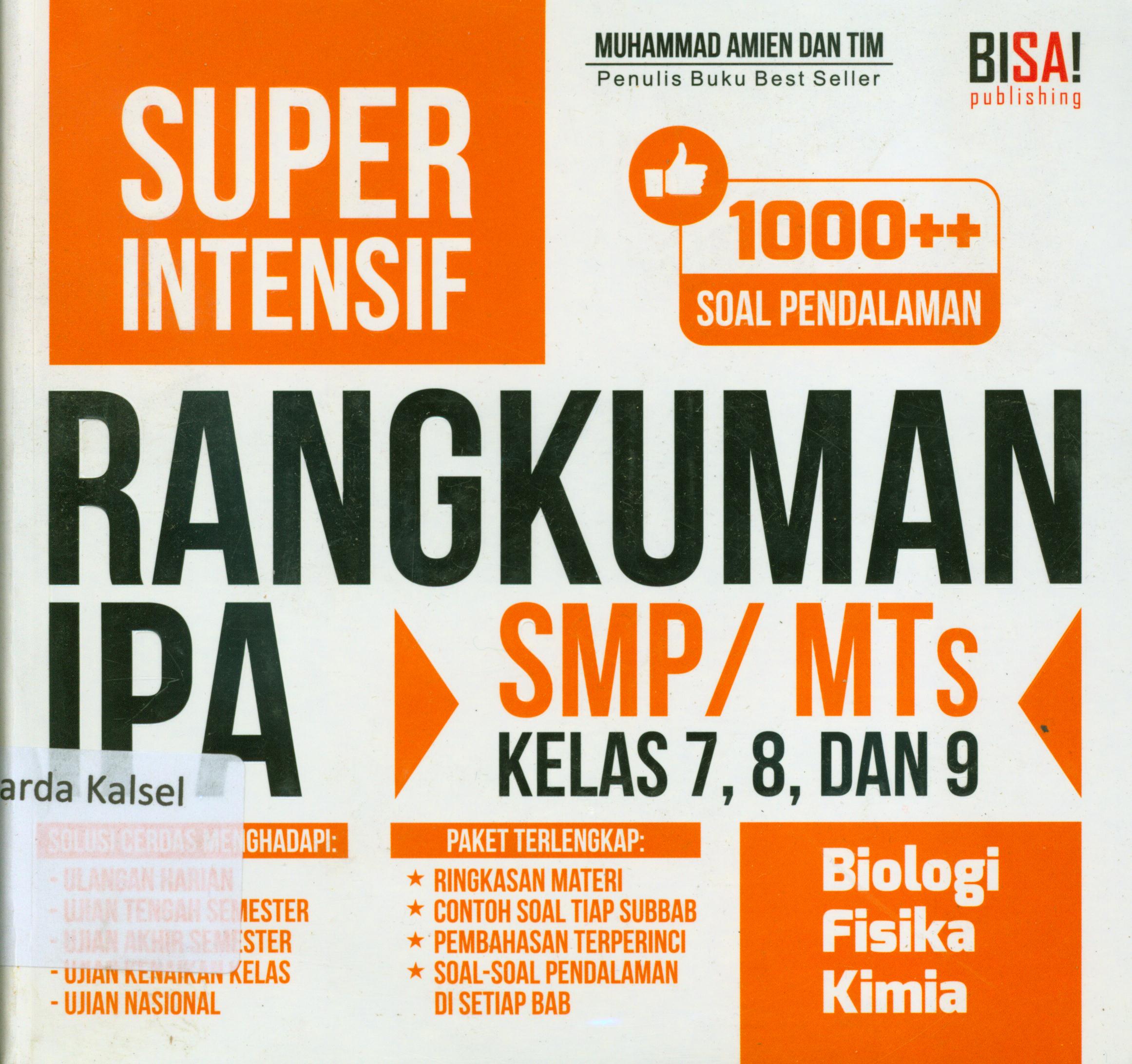 | Judul | Super intensif : Rangkuman IPA SMP/MTs, kelas 7, 8 dan 9 : Biologi, Fisika, Kimia / Muhammad Amien ; penyunting, Tin Zulaeha, Rini Yuliana, M. Lukman Hakiem |