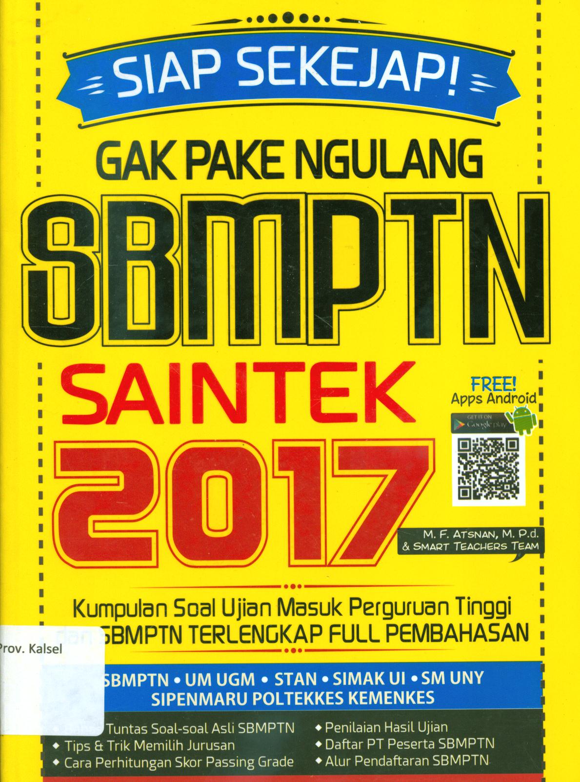$a Siap sekejab! gak pake ngulang SBMPTN SAINTEK 2017 / $c M.F, Atsnan dan smart Teachers Team ; penyunting, Mukti S.