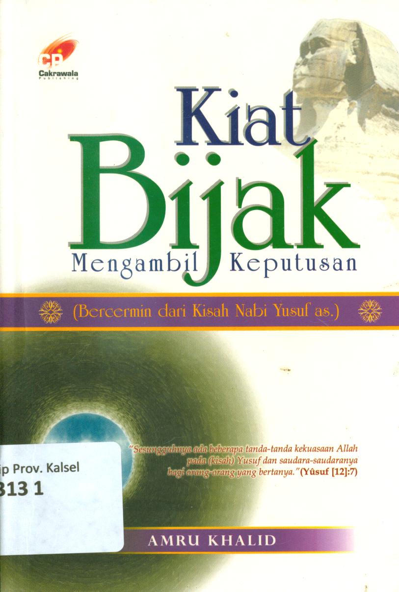 | Judul | Kiat bijak mengambil keputusan ( bercermin dari kisah Nabi Yusuf As ) / Amru Khalid ; penerjemah, Lukman Junaidi ; penyunting, Masrukhin. |