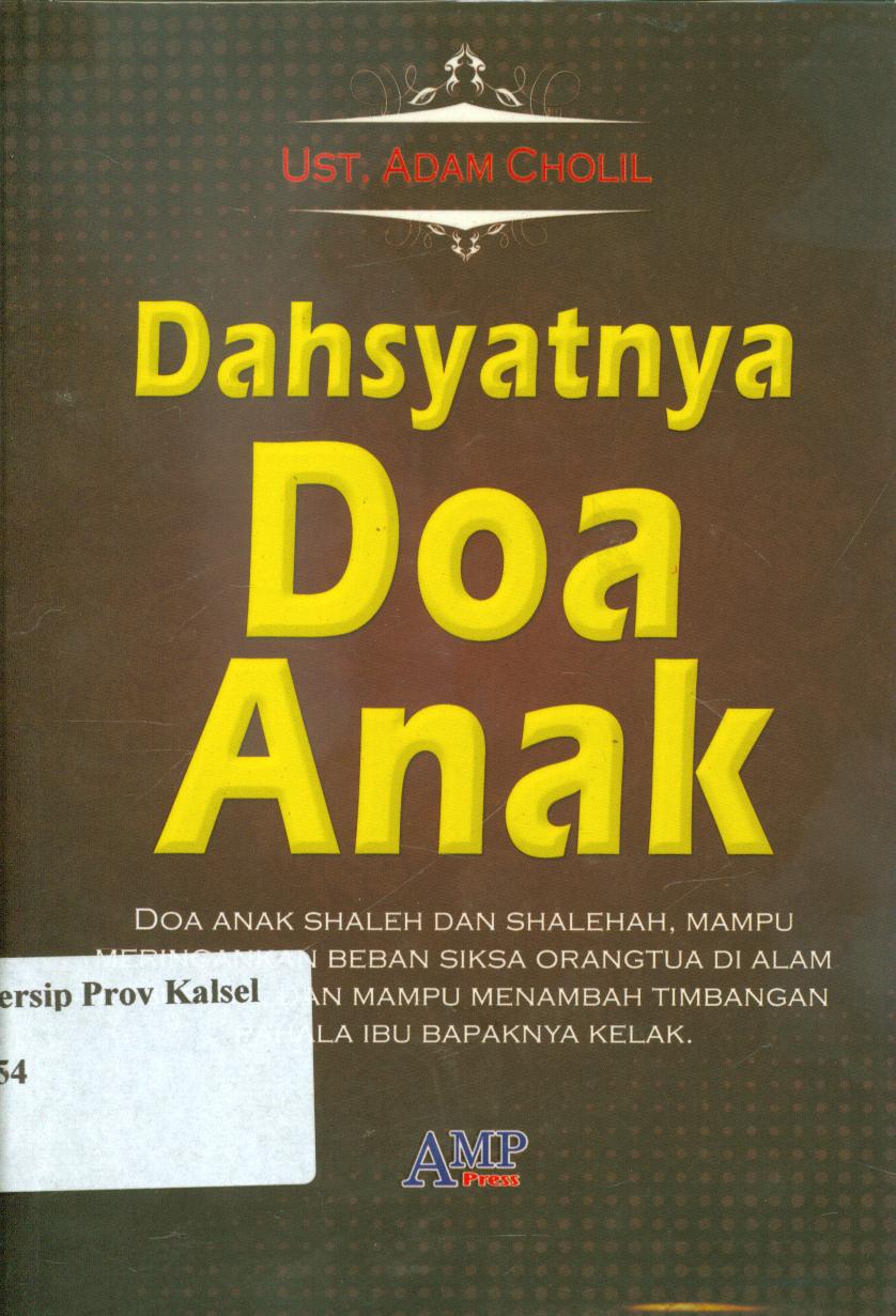 | Judul | Dahsyatnya doa anak : Doa anak shaleh dan shalehah mampu meringankan beban siksa orang tua di alam kuburnya, dan mampu menambah timbangan pahala ibu bapaknya kelak / Ust. Adam Cholil ; editor, Tim AMP Press. |