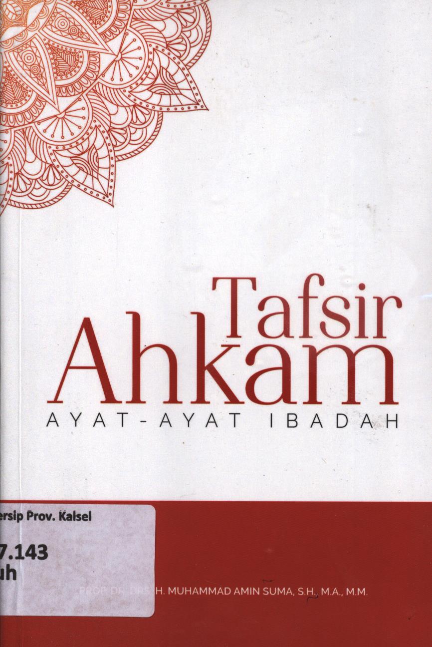 | Judul | Tafsir ahkam ayat-ayat ibadah / H. Muhammad Amin Suma |