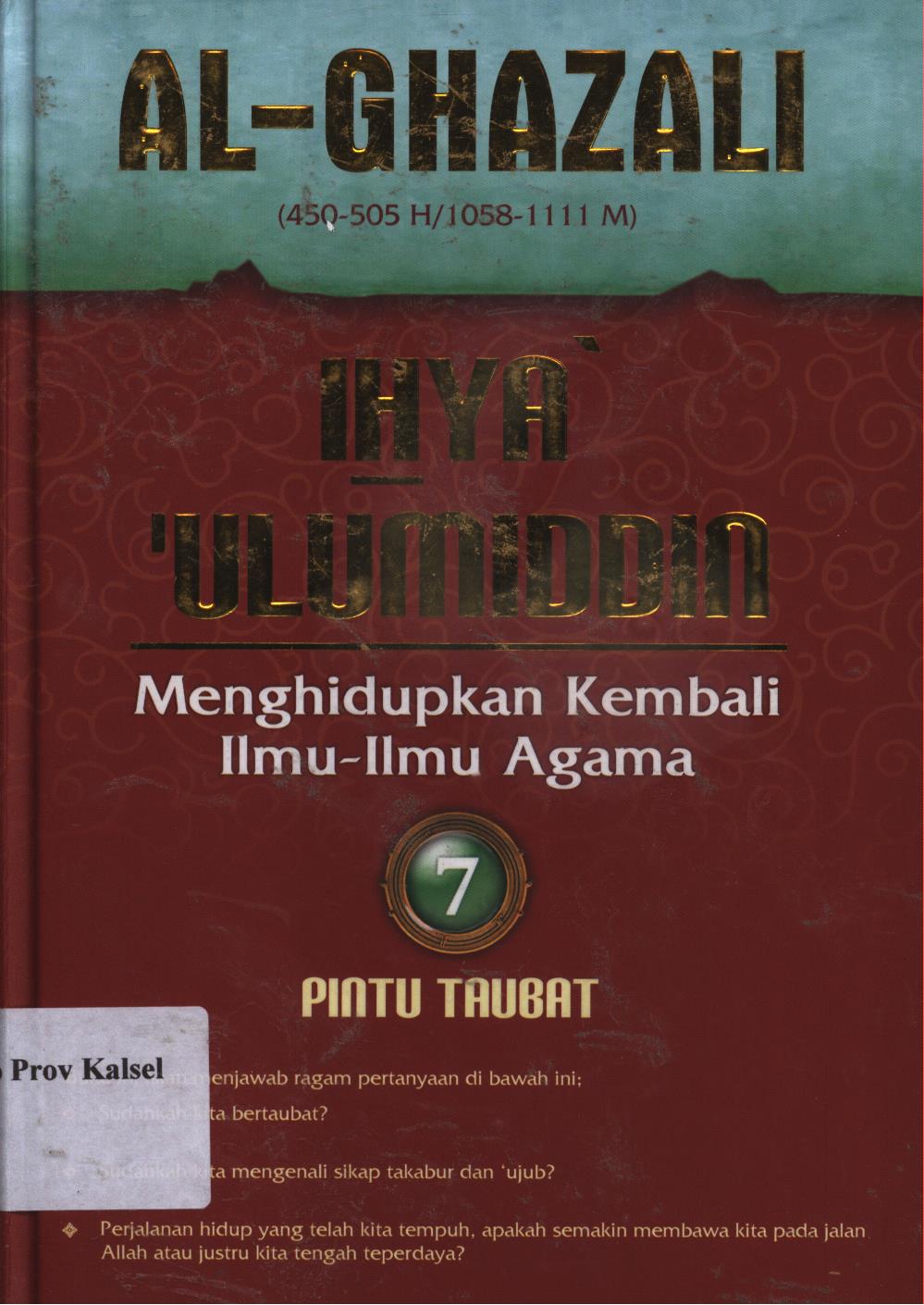 | Judul | Ihya Ulumiddin : Menghidupkan kembali Ilmu-ilmu agama 7 : Pintu Taubat / Al-Imam Al-Ghazali ; penerjemah, Ibnu Ibrahim Ba'adillah ; penyunting, Muh. Iqbal Santosa |