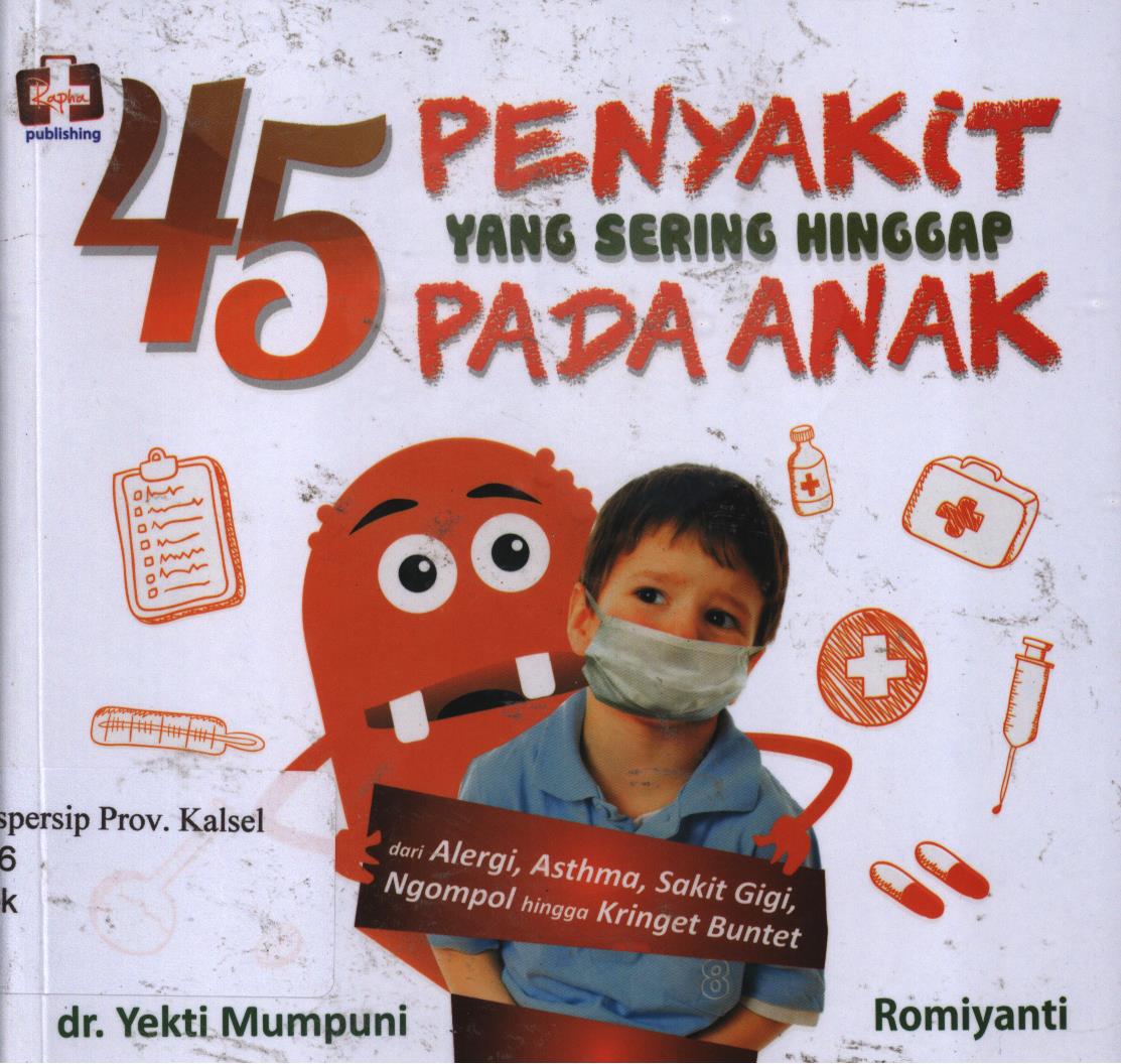| Judul | 45 penyakit yang sering hinggap pada anak : dari alergi, asthma, sakit gigi, ngompol hingga kringet buntet / Yekti Mumpuni, Romiyanti ; editor, Aldo Sahala |