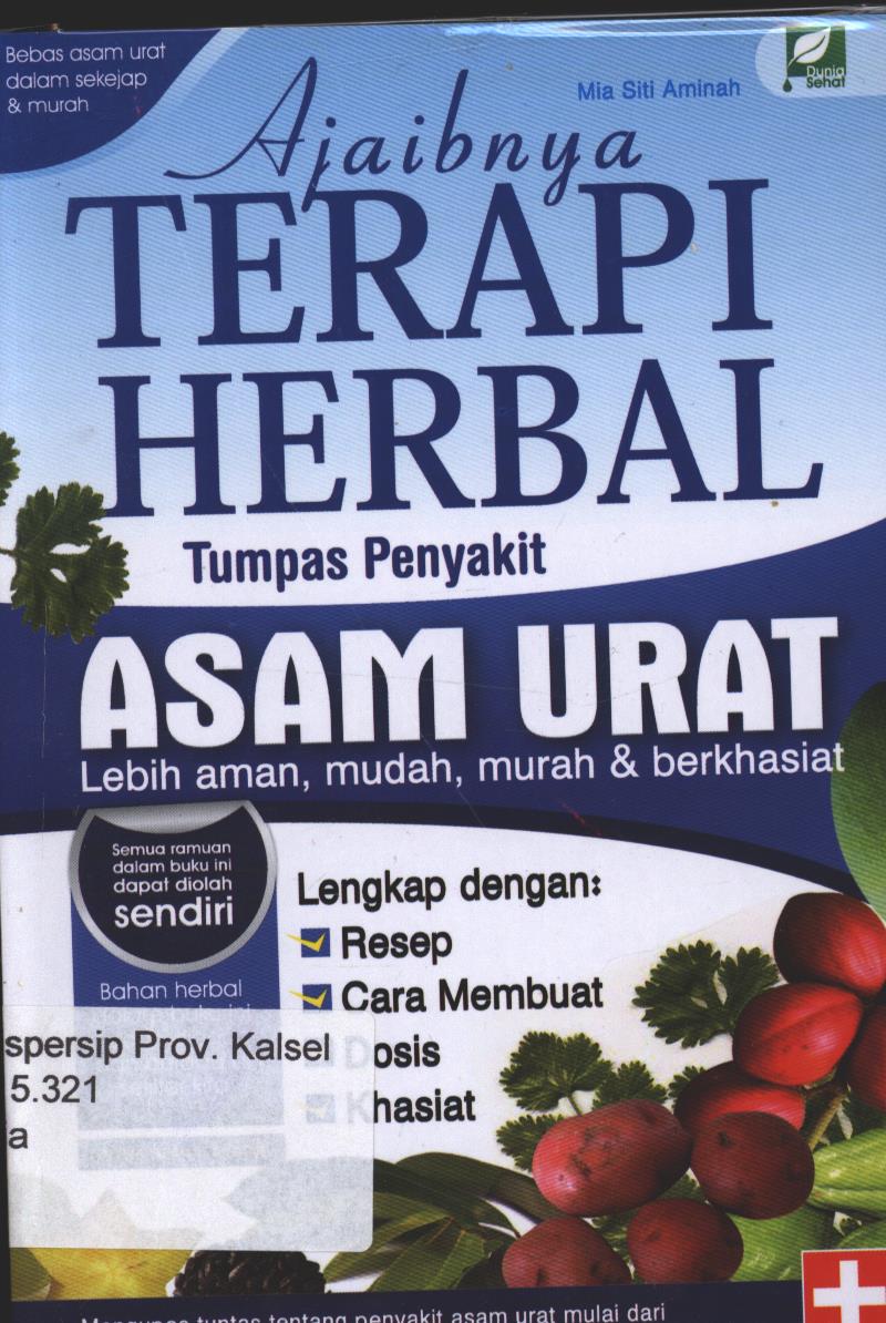 | Judul | Ajaibnya Terapi Herbal Tumpas Penyakit Asam Urat : Lebih Aman, Mudah, Murah dan Berkhasiat / Mia Siti Aminah ; editor, Adhi Muhammad S. |