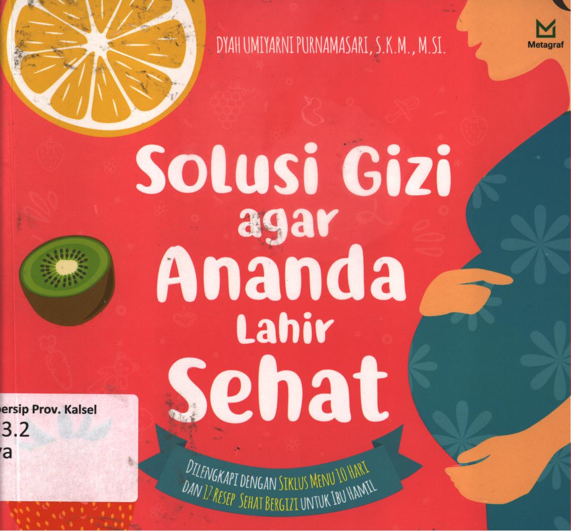 | Judul | Solusi gizi agar ananda lahir sehat dilengkapi dengan siklus menu 10 hari dan 17 resep sehat bergizi untuk ibu hamil / Dyah Umiyarni Purnamasari ; editor, Iswan Heriadjie |