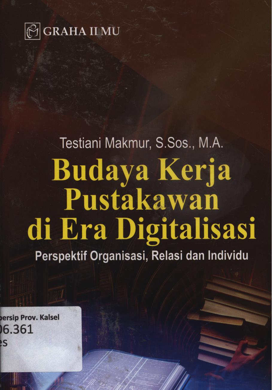 | Judul | Budaya kerja pustakawan di era digitalisasi : perspektif organisasi, relasi dan individu / Testiani Makmur. |