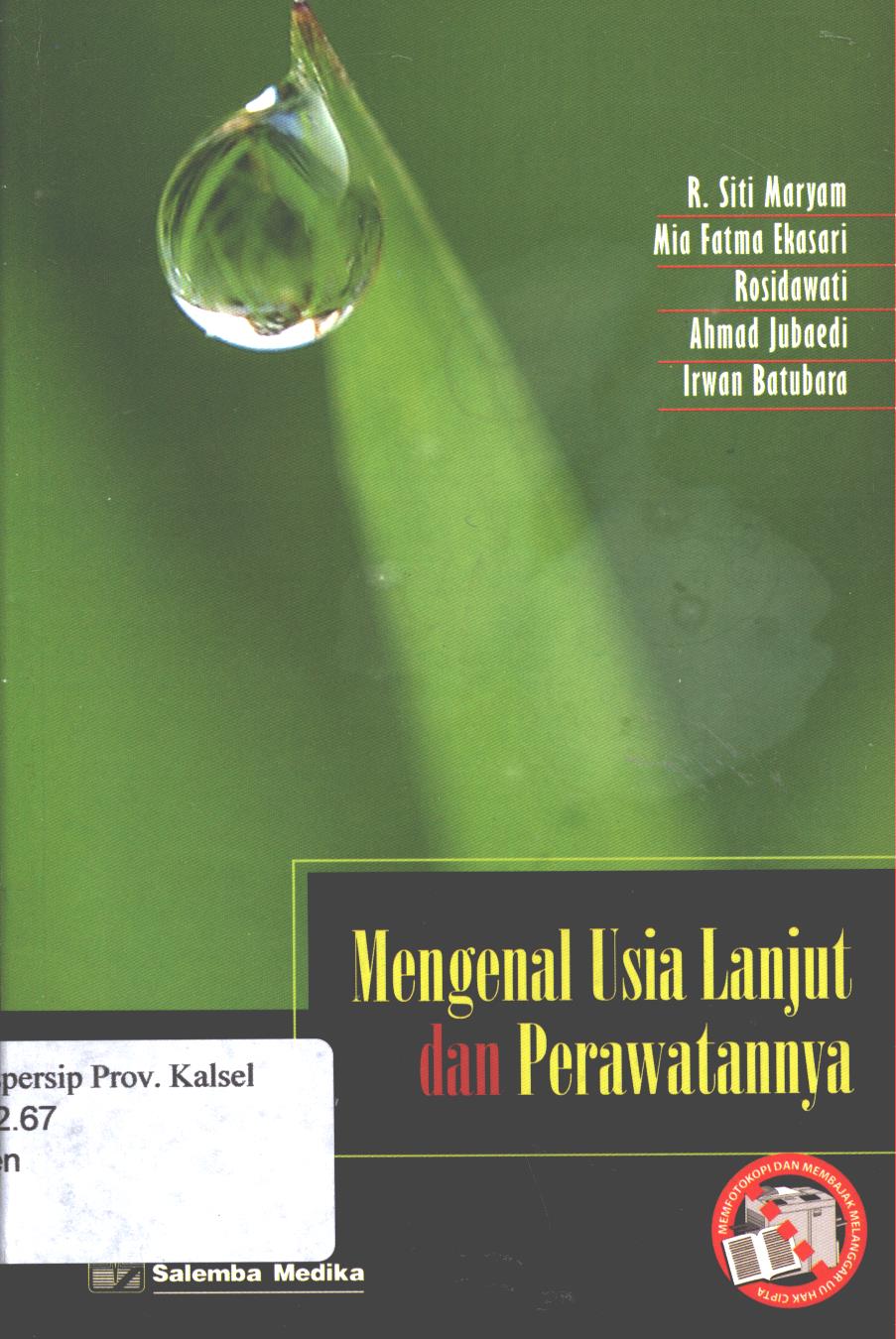| Judul | Mengenal usia lanjut dan perawatannya / R. Siti Maryam, Mia Fatma Ekasari, Rosidawati, Ahmad Jubaedi, Irwan Batubara |
